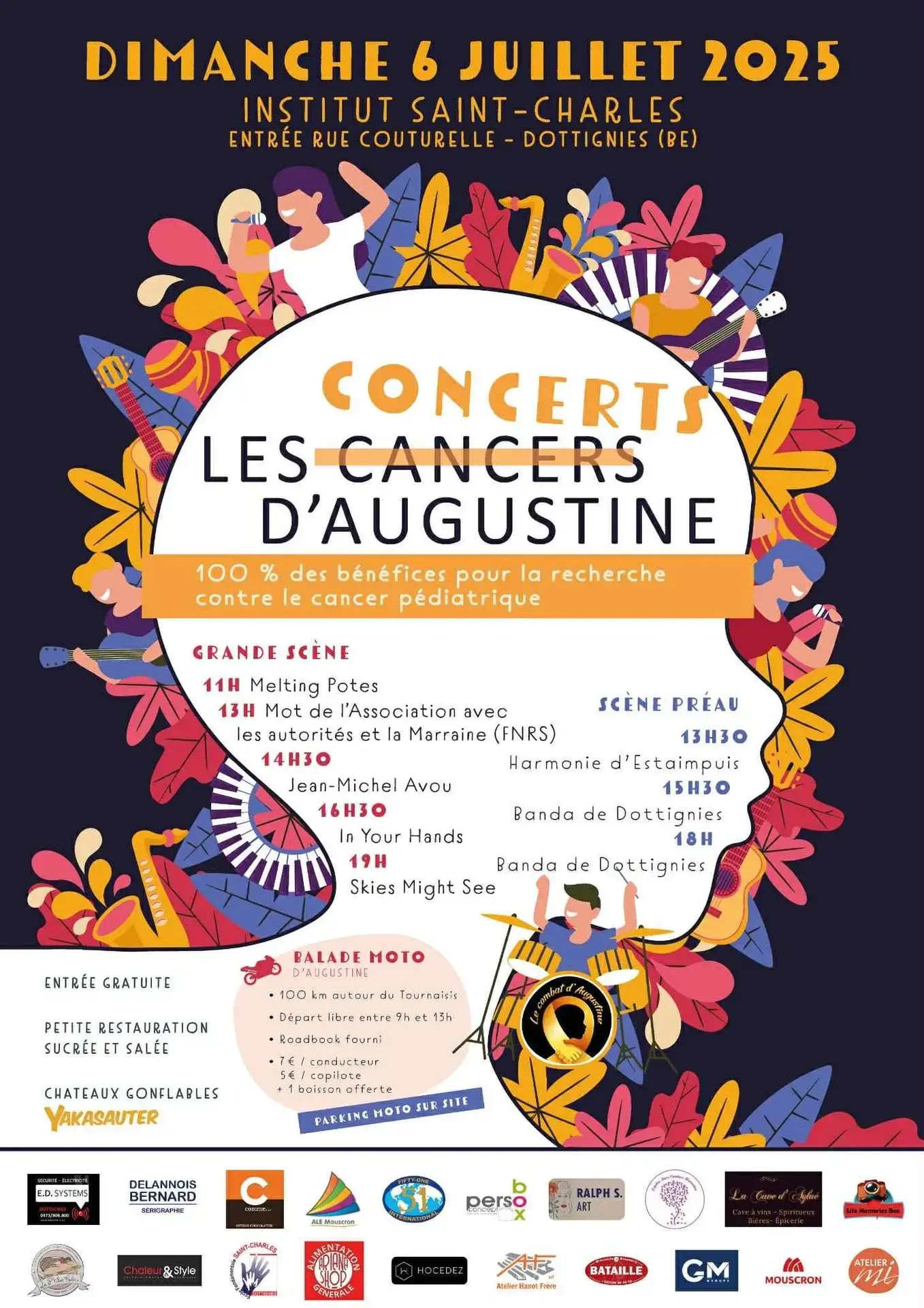Le dimanche 6 juillet 2025, l’Harmonie Royale d’Estaimpuis se produira dans le cadre du festival Les Concerts d’Augustine, un événement caritatif organisé à l’Institut Saint-Charles de Dottignies. Leur prestation aura lieu à 14h30 sur la scène préau, et constituera l’un des moments phares de la journée.